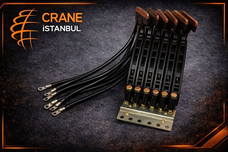 Crane İstanbul akım alıcı fırçaları, açık bara sistemleri ile tam uyumlu olacak şekilde üretilir. 6 iletkenli 60 amper akım alıcı fırça, yüksek temas güvenliği, uzun servis ömrü ve düşük bakım ihtiyacı ile üretim hatlarında maksimum performans sağlar.